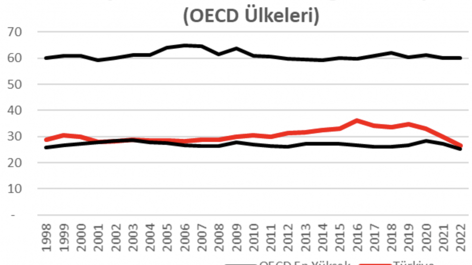 Peki gerçeği hangi rakamlara bakarak görebiliriz? Vergi adaletsizliğini görmek için işçi ve emekçilerin vergi yükünü en çok üstlendiği kaynaktan kesilen vergilerin ve tüketim vergilerinin (hiç geliri olmayan ile milyarder para babasının da aynı oranda ödediği tüketim vergileri ne kadar ağırlıklı ise vergi adaletsizliği o kadar fazladır) toplam vergileri içindeki payına bakmak gerekir. Buraya baktığımızda kaynaktan kesilen vergilerin toplam vergilerin toplam gelir vergisi içindeki payının yüzde 93 olduğunu, tüketimden alınan dolaylı vergilerin de toplam vergi gelirleri içindeki ağırlığının yüzde 66 olduğunu görüyoruz. Ayrıca OECD’nin raporlarına göre 2024 yılı için ücretler içindeki vergi ve sosyal sigorta primlerinin ağırlığını gösteren vergi takozu açısından da OECD ortalaması yüzde 34,9’dur ve Türkiye yüzde 39 ile OECD ortalamasının 4,1 puan üstündedir.