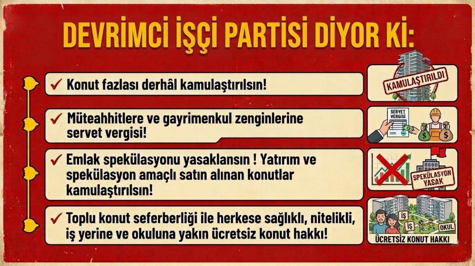 Emlak spekülasyonu yasaklansın! Yatırım ve spekülasyon amaçlı satın alınan konutlar kamulaştırılsın!