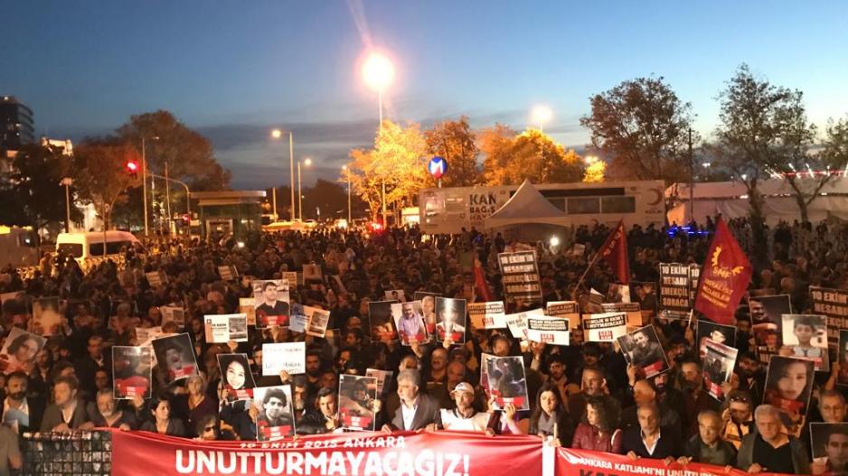 10 Ekim 2015’te Ankara Tren Garı önünde yapılacak olan Emek, Demokrasi ve Barış mitingini hedef alan katliamın 4. yıldönümünde, hayatını kaybedenleri anmak ve katliamın sorumlularını protesto etmek için patlamanın olduğu yerdeydik.