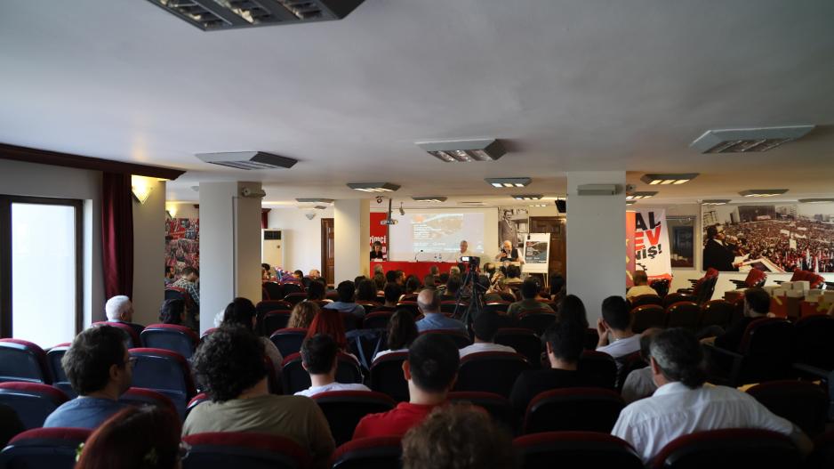 Devrimci Marksizm dergisi Cumhuriyet’in kuruluşunun 100. yıldönümü yaklaşırken “Cumhuriyet, İstibdad, Hürriyet” başlıklı konferansla Türkiye’nin yakın tarihini sınıf perspektifiyle ve Marksist yöntemle masaya yatırdı. Konferans, içeriğine de çok uygun bir şekilde Birleşik Metal-İş Sendikası Genel Merkez konferans salonunda gerçekleşti. Salonda çok sayıda fabrika ve işyeri temsilcisi, öncü metal işçileri başta olmak üzere farklı sektörlerden işçiler ve emekçiler bulunuyordu. Toplantıya Birleşik Metal-İş Genel Sekreteri Özkan Atar ve Tek Gıda-İş Örgütlenme Uzmanı Yunus Durdu da katıldı.