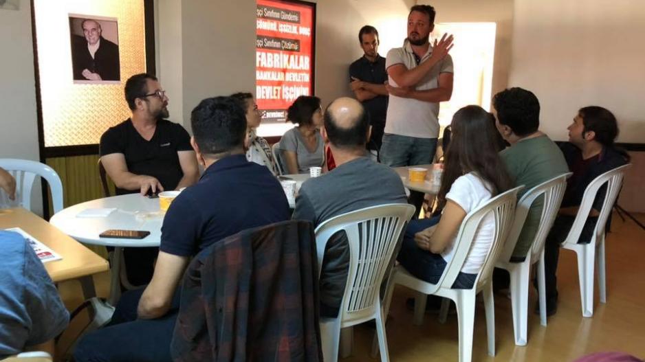 Gazetemizin “Yalanın istibdadına karşı emekçi halkın gerçeğini örgütleyelim!” manşetiyle çıkan Eylül sayısı üzerine Armağan yoldaşımız bir sunum gerçekleştirdi. İşçilerin, emekçilerin iki bayram tatili olmasına rağmen dinlenmeye fırsat bulamadığı, emekçi halkın gündeminin ekonomik krizle, geçen iki seçim dönemiyle son derece yoğun olduğu yaz döneminde Devrimci İşçi Partisi’nin fabrikalarda ve tersanelerde, işçi evlerinde, emekçilerin sabahın erken saatlerinde mesaiye gitmek üzere kullandıkları yollarda, metrobüs ve fabrika servisleri duraklarında ara vermeden gerçekleştirdiği propaganda ve ajitasyon faaliyetlerini anlattı. İşçi sınıfının gündeminden hiç eksilmeyen ekonomik krizi, rekor üstüne rekor kıran işsizlik oranlarını anlatan yoldaşımız patronların ticari sır arkasına saklanarak işçi çıkarttığını söyledi. İşçi sınıfının işten çıkartmalara karşı defterlerin açılması talebini yükseltmesi gerektiğini söyledi. Krizde işçi çıkartmadan yapamadığını iddia eden patronların işletmelerinin işçi denetiminde kamulaştırılması gerektiğini vurguladı. Aynı zamanda bu dönemde işçi sınıfının gündeminde olan Türk-İş’in toplu sözleşmelerdeki teslimiyetinden ve Ergün Atalay’ın skandal gafından bahseden yoldaşımız DİP’in, teslimiyet anlaşmasına imza atıldığı anda Atalay yönetimine istifa çağrısı yaptığını söyledi. Fabrikaların, iş yerlerinin bu dönemdeki başka gündemlerine de değindi.