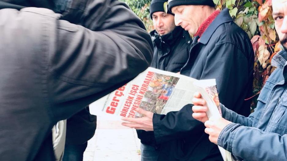 Gazetemizi de ilgiyle karşılayan işçiler, başyazıda yer alan tüm işçi sınıfının birlikte mücadele etmesi gerekliliği konusunda hemfirkir olduklarını ve grevlerini tüm işçilerin grevi olarak gördüklerini vurguladılar. İşçilere Gerçek gazetesi olarak her zaman yanlarında olacağımızı, bu grevin sesini tüm işçilere duyurmak için sayfalarımıza taşıyacağımızı belirttik ve grevlerinde başarılar dileyerek işçilerle vedalaştık.