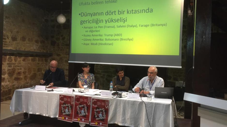 17 Mayıs Cuma günü Kocaeli’de, Mimarlar Odası Tarihi Bina’da Eğitim Sen Kocaeli Şubesi, Mimarlar Odası Kocaeli Şubesi ve Makine Mühendisleri Odası Kocaeli Şubesi’nin düzenleyicisi oldukları “Hukuk ve Devlet Teorisi” başlıklı Uluslararası Taner Yelkenci Sempozyumu gerçekleştirildi. Sempozyumun ilk gününde konuşmacı olarak Devrimci İşçi Partisi Genel Başkanı Sungur Savran da katıldı. Etkinlik 2013 yılında genç yaşta kaybettiğimiz değerli Marksist felsefeci Taner Yelkenci anılarak başladı ve açılış konuşmalarının ardından “Devletin Krizi ve Kritiği” başlıklı ilk oturuma geçildi.
