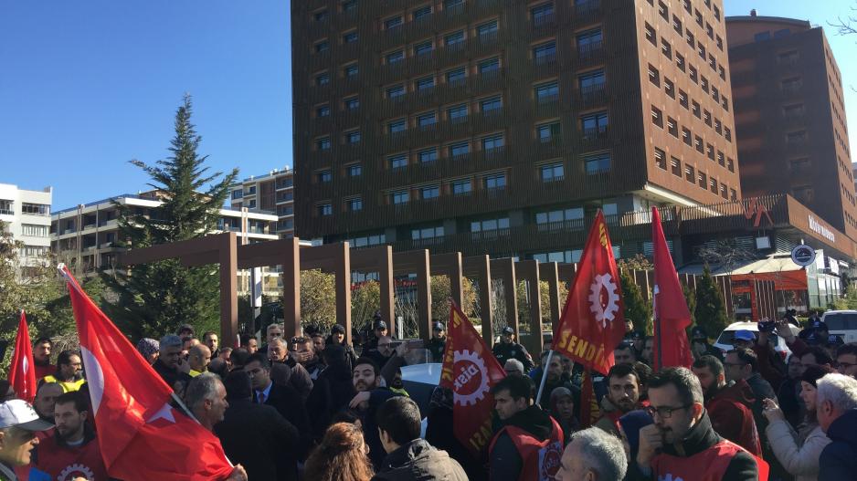Yasal haklarını kullandıklarını ve asıl hukuksuzluğun eyleme müsaade edilmemesi olduğunu belirten işçiler karşısında polis amirleri üst makamlardan kesin talimat aldıklarını, eylemin otelin önünde yapılmasına müsaade etmeyeceklerini söylediler. İşçiler ise basın açıklamasının en temel anayasal demokratik hakları olduğunu ve bunu yapana kadar da Hilton Otel önünden ayrılmayacaklarını vurguladılar.