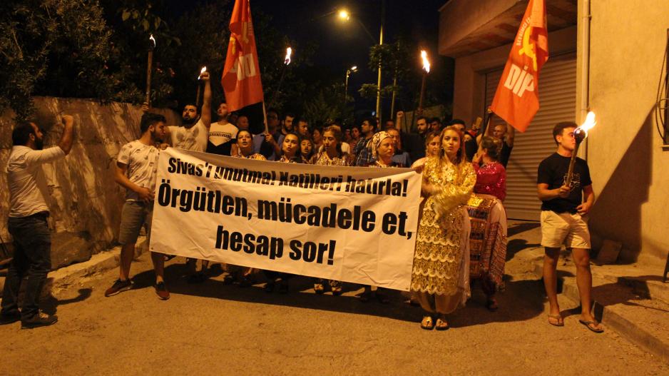 İzmir’in Altındağ mahallesinde Sivas katliamının 26. yıl dönümü anması yürüyüş ve etkinliklerle gerçekleşti.