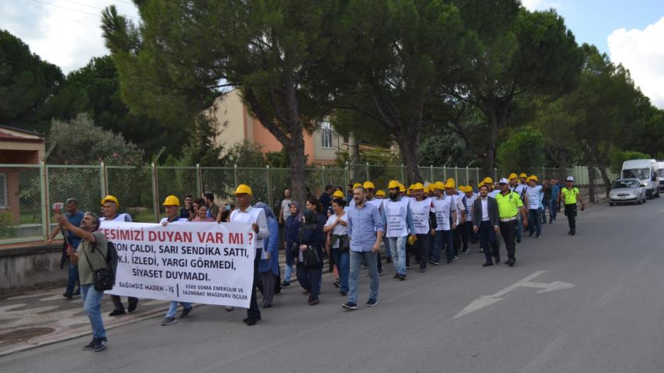Soma katliamından sonra işten çıkarılan ve 5 senedir kıdem ve ihbar tazminatlarını alamayan 50 maden işçisi ve 10 sendika görevlisi, haklarını alabilmek ve seslerini duyurmak için 5 Ekim Cumartesi günü Bağımsız Maden-İş Sendikası öncülüğünde Soma'dan başlayıp Ankara Enerji Bakanlığı önünde sonlanacak ve 10 gün sürecek yürüyüşe başladılar.