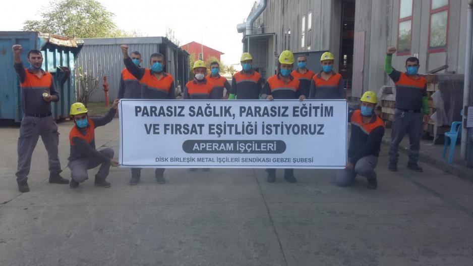 Birleşik Metal-İş Gebze 1 No’lu Şubesi bugün örgütlü olduğu 14 fabrikada pankartları ve sloganlarıyla “parasız sağlık, parasız eğitim, fırsat eşitliği istiyoruz” şiarıyla eylemler gerçekleştirdi.