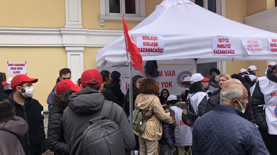 25 Ekim sabahından bu yana Bakırköy Belediye Başkanlığı binası önünde grevde olan işçiler, 2019 yılından beri toplu iş sözleşmesi yapamamaları nedeniyle yaşadıkları kayıpların telafi edilmesi amacıyla 2020 yılı için %13 ve 2021 yılı için %15 oranında zam yapılmasını istiyor. Bakırköy Belediyesi yönetiminin geçmişe dönük zam taleplerini Genel-İş’in yetkiye itiraz ettiği gerekçesiyle kabul etmemesi ve sadece ileriye dönük bir zam yapabileceğini iletmesi üzerine grev kararı alındı. Nitekim 2019’dan beri ücretlerine bir zam alamayan ve enflasyona karşı en az %40’a varan erimeyle karşı karşıya kaldığını belirten işçiler, hem geçmişe dönük kayıplarını telafi etmek hem gelecek dönemde yapılacak zamlar altında ücretlerini ezdirmemek istiyor.