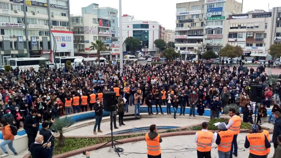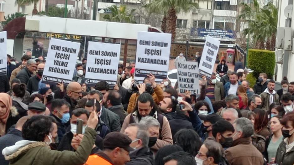 11 Şubat’ta Aliağa gemi sökümü şantiyelerinde yevmiyelere zam yapılması, kişisel koruyucu ekipmanlarının patron tarafından eksiksiz sağlanması ve SGK primlerinin gerçek maaş üzerinden yatırılması talepleriyle başlayan iş durdurma eylemi 12 Şubat’ta diğer şantiyelere sıçramıştı. Bir gün sonra, 12 Şubat günü söküm bölgesinde bulunan 22 şantiyenin tamamında iş durmuş, gemi söküm işçileri şantiyelerin aksine pırıl pırıl ve heybetli patron derneği GEMİSANDER önünde toplanarak taleplerinin karşılanması için mücadeleye adım atmıştı.