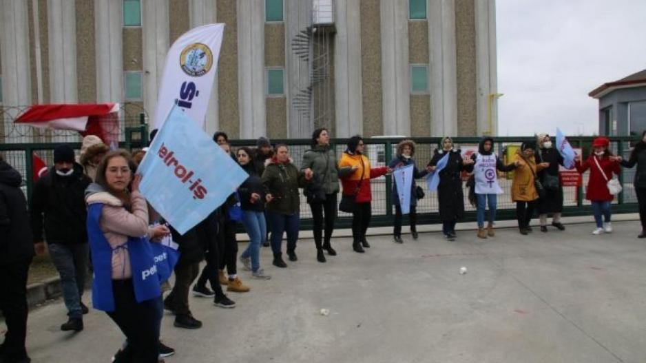 Gebze’de 8 Mart’a başta metal işçisi kadınlar damgasını vurdu. Birleşik Metal-İş Gebze Şubesi’nin Kadın Komisyonu Dünya Emekçi Kadınlar Günü’nde Farplas direnişçisi işçilerle bir araya geldi. Birleşik Metal’li kadınlar, sendikalı oldukları ve fabrikalarında üretimden gelen güçlerini kullandıkları için işten atılan, bunun için fabrika önünde direnen işçilerin çadırına güçlü bir kortejle yürüdü. Akşam ise Gebze Kadın Platformu’nun örgütlediği eylem için pek çok sektörden emekçi kadın Trafo Meydan’da buluştu. Birleşik Metal-İş Kadın Komisyonu’ndan kadınlar eylemde metal işçisi kadınları mücadelenin en önüne çağıran, erkek egemen kapitalist sisteme ve emperyalizme karşı işçi kadınların taleplerini yükselten dövizler taşıdı. Polisin bütün engellemelerine rağmen, emekçi kadınlar yumruklarını kaldırarak Kent Meydanı’na yürüdüler. Meydanda bir basın açıklaması gerçekleştirerek bütün kadınlara mücadeleyi yükseltme çağrısında bulundular.