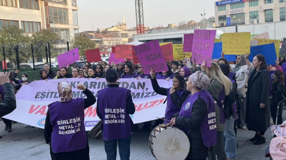 Birleşik Metal-İş Kadın Komisyonu adına basın açıklamasını Gebze 1 Nolu Şubeden Emine Azak ile Gebze 2 Nolu Şubeden Kezban Türkmen okudu. Basın açıklamasında aşağıdaki talepler yer aldı: