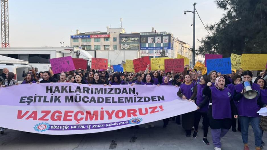 Birleşik Metal-İş Sendikası Kadın Komisyonu 8 Mart Dünya Emekçi Kadınlar Günü için 7 Mart Perşembe günü Gebze Kent Meydanı’nda kitlesel bir basın açıklaması gerçekleştirdi. Kadın Komisyonu’nun çağrısı ile 200’ün üzerinde metal işçisi kadın meydanda buluştu. “Haklarımızdan, eşitlik mücadelemizden vazgeçmiyoruz” diyen metal işçisi kadınlar sloganlarıyla, sıkılı yumruklarıyla, coşkularıyla alanı doldurdu.