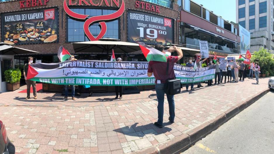 Emperyalizme ve Siyonizme karşı Filistin Dostları platformu İsrail’in ABD’nin desteği ile Batı Şeria’da Siyonist yerleşimlerden başlayarak bölgenin yüzde 30’una ulaşan bir alanı ilhak etme planını İstanbul Levent’te bulunan sözde İsrail konsolosluğu önünde protesto etti. Tüm dünyada ilan edilen öfke günü kapsamında yapılan eylemde Filistin dostları Türkçe Arapça ve İngilizce “Emperyalist saldırganlığa ve Siyonist ilhaka değil İntifada’ya ortak ol!” yazan uzun bir pankartla birlikte Levent metro çıkışından konsolosluk binasına kadar sloganlarla yürüdüler. Emperyalizme ve Siyonizme karşı mücadeleye her zaman önem ve öncelik veren Devrimci İşçi Partisi de eylemde bayrağı ve dövizleriyle yer aldı.