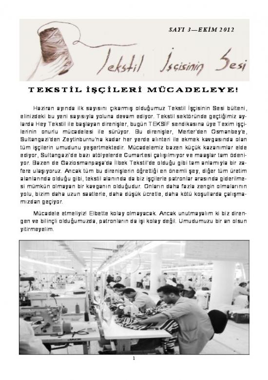 Tekstil İşçisinin Sesi Sayı 3 İNDİR