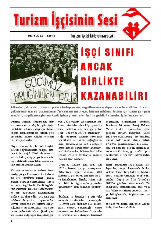 Turizm İşçisinin Sesi Sayı 3 İNDİR